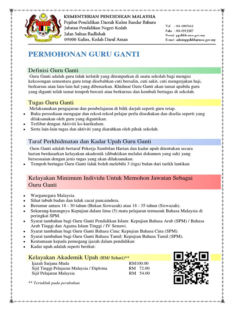 Permohonan Jawatan Guru Ganti Mystep Di Pejabat Pendidikan Daerah Syarat Syarat Cara Memohon